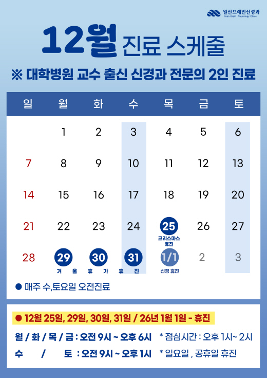 | 12월 진료안내 By 관리자 / 2025-11-24 PM 04:47 / 조회 : 130회 |